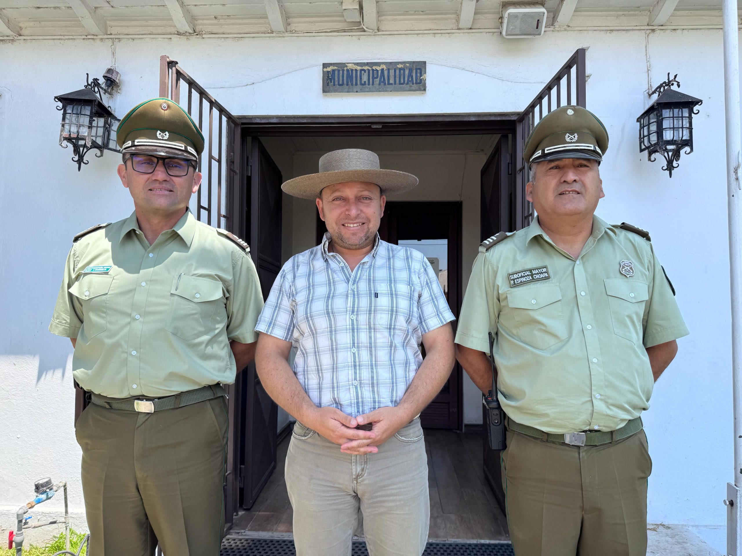 En la alcaldía de la Municipalidad de Sagrada Familia, se realizó el encuentro en el que el Jefe Tenencia de Sagrada Familia, suboficial mayor Pedro Espinoza presentó al alcalde Osvaldo Jorquera, al nuevo Jefe de Retén de Villa Prat, suboficial mayor, José Ramírez Marabolí.