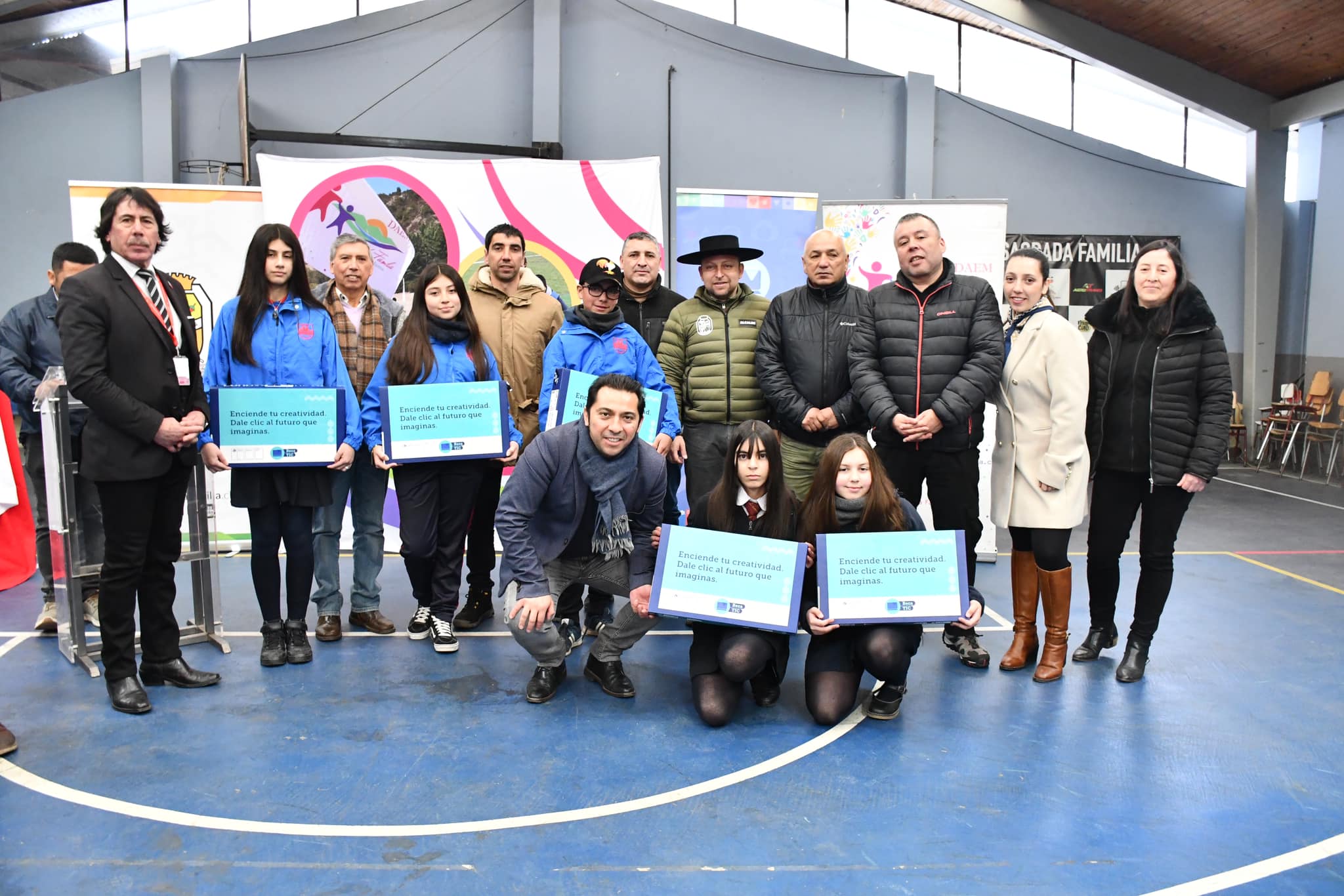 En una actividad desarrollada en el gimnasio municipal fueron entregados casi 200 computadores, acompañados de programas educativos y sistema de conectividad, para alumnos de los séptimos años básicos, pertenecientes a las escuelas de Sagrada Familia.