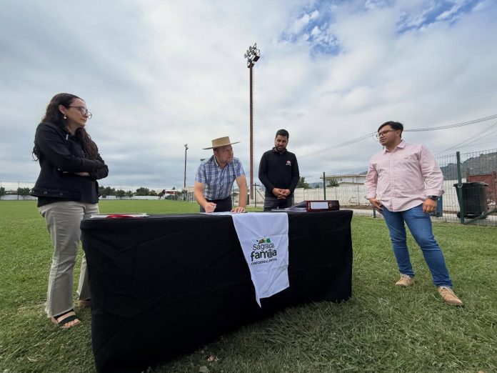 Con la firma de entrega de terreno, se dio el vamos al proyecto que instalará 430 nuevas graderías en el estadio municipal de Sagrada Familia.