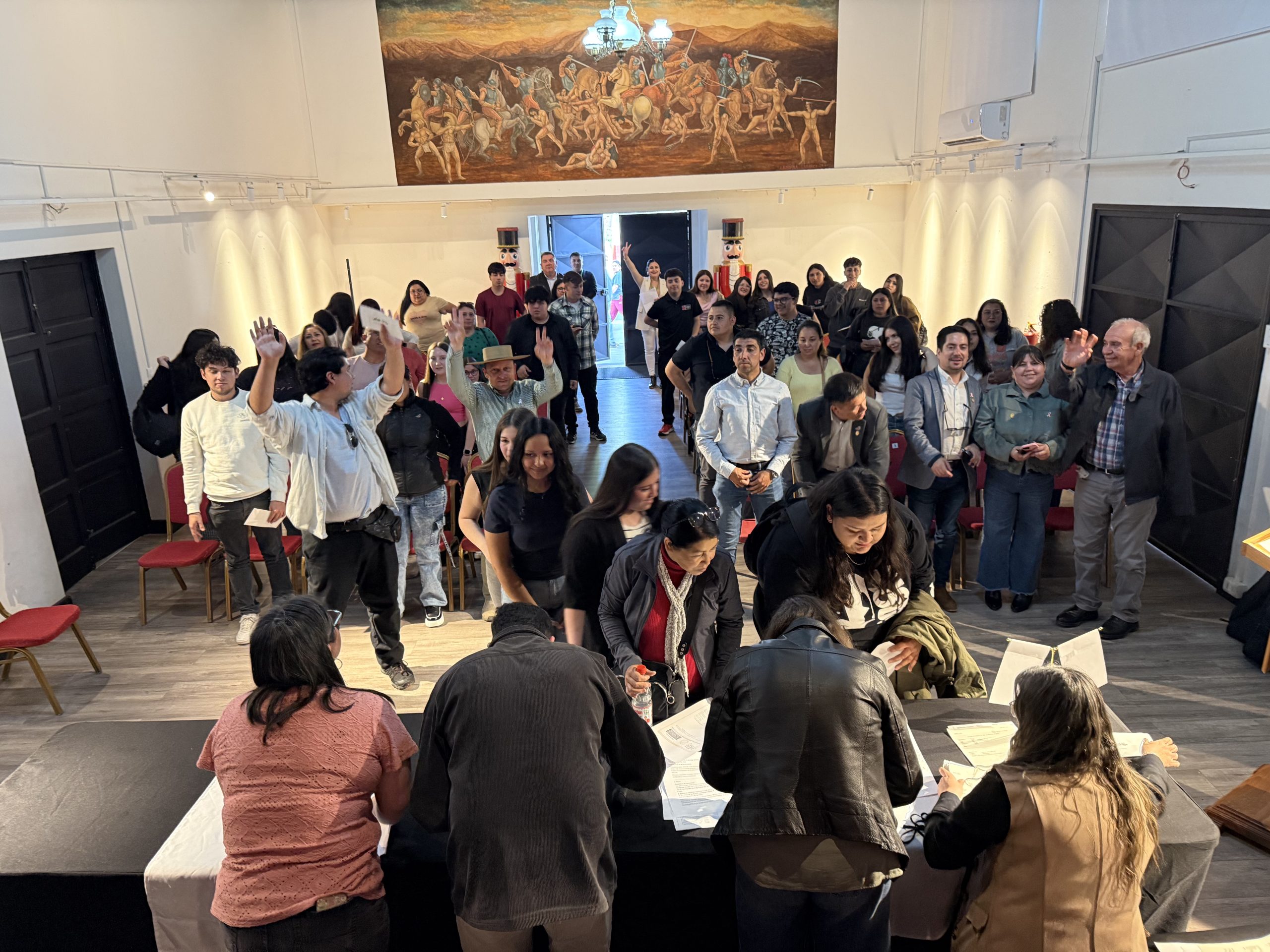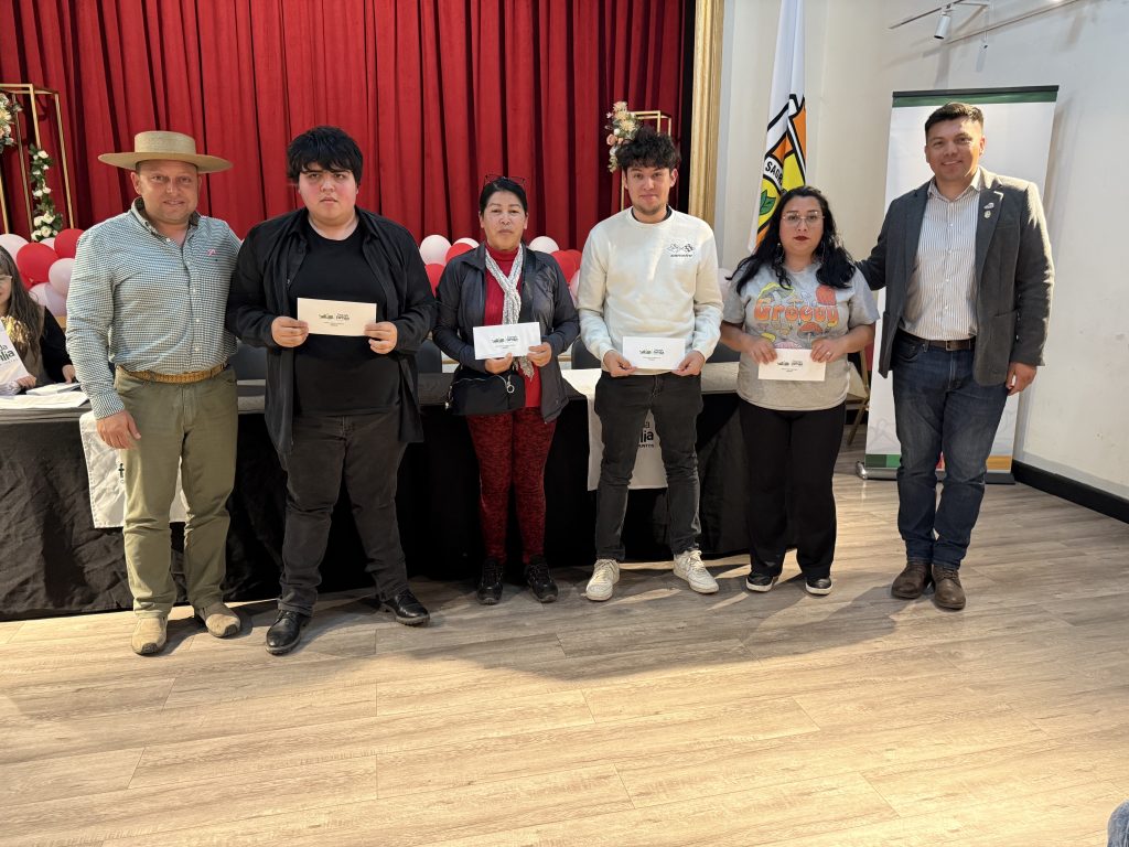 El alcalde Osvaldo Jorquera, junto a los concejales Ignacio Alcaíno, Alen Quiroga, Felipe Espinoza, Yanina Herrera y Juan San Martín, entregaron este aporte económico a representantes de los cerca de setenta beneficiados de este año.