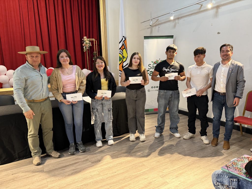 Durante un encuentro realizado en  el teatro municipal, se concretó la entrega de becas municipales a estudiantes de educación superior de Sagrada Familia.