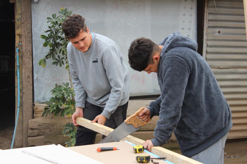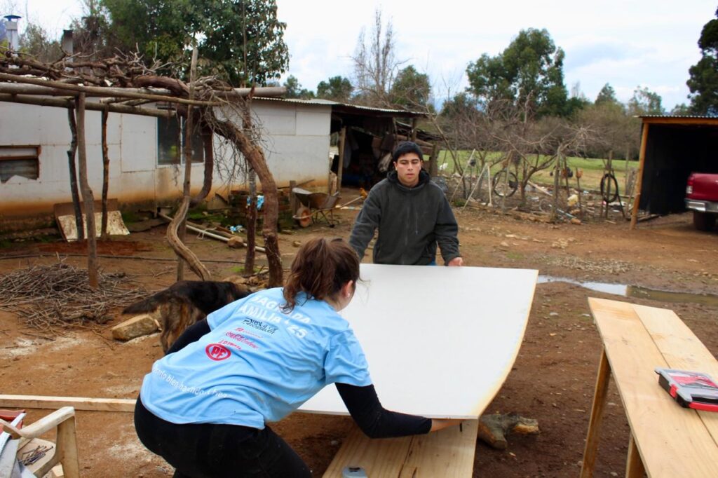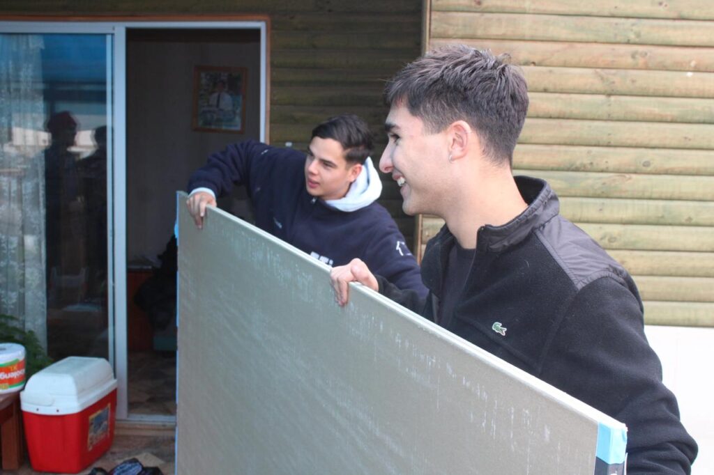 Durante una semana, los universitarios fueron acogidos en las dependencias del internado de la escuela de Villa Prat y, desde allí, se desplegaron para trabajar en diferentes viviendas que necesitaban arreglos no estructurales.