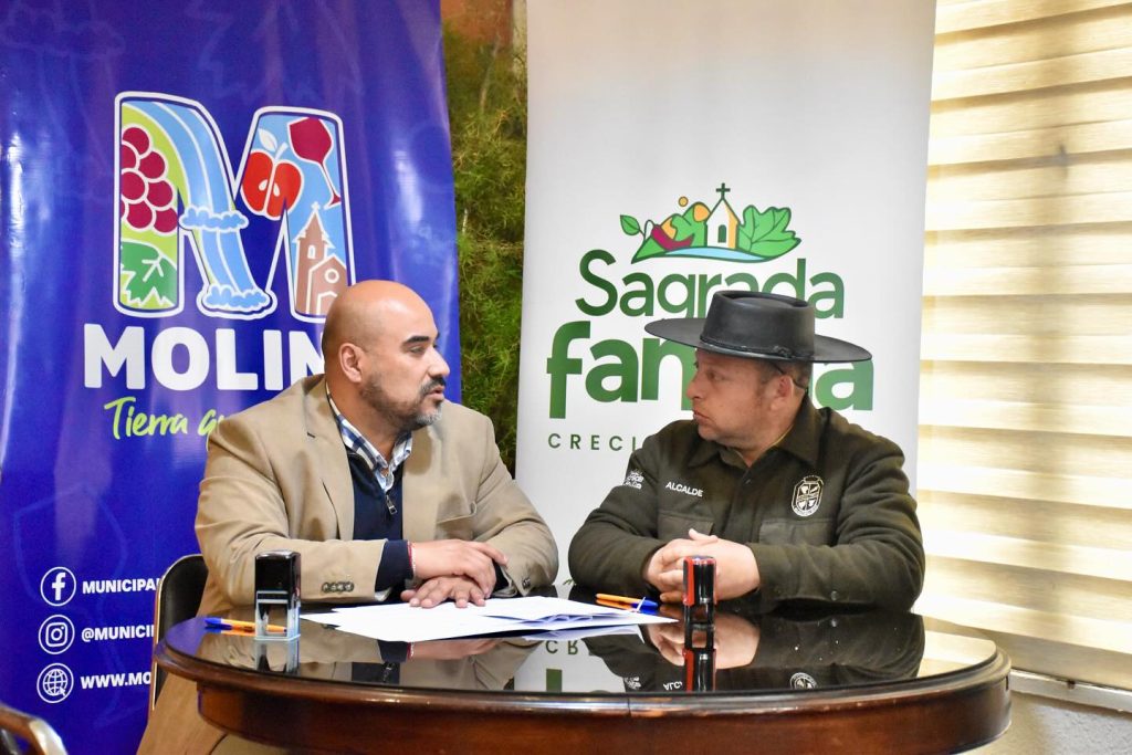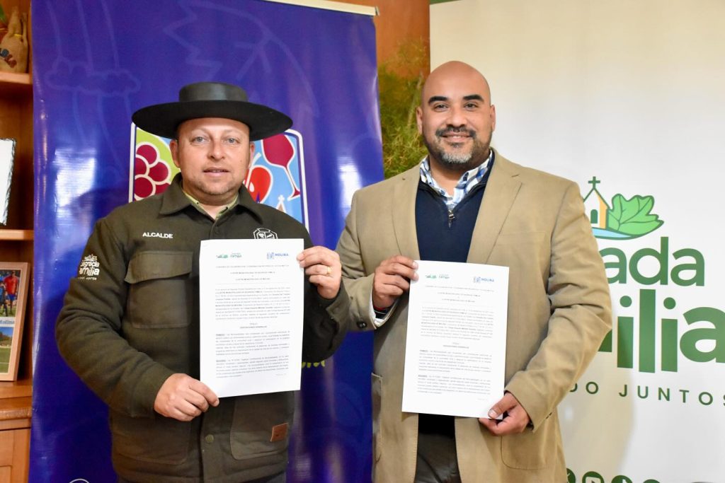 El alcalde Osvaldo Jorquera, junto a su par de Molina, Felipe Méndez, concretaron la firma de un convenio que permitirá unir esfuerzos y potenciar el desarrollo de ambas comunas.