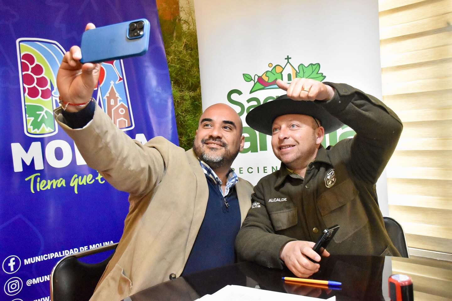 El alcalde Osvaldo Jorquera, junto a su par de Molina, Felipe Méndez, concretaron la firma de un convenio que permitirá unir esfuerzos y potenciar el desarrollo de ambas comunas.