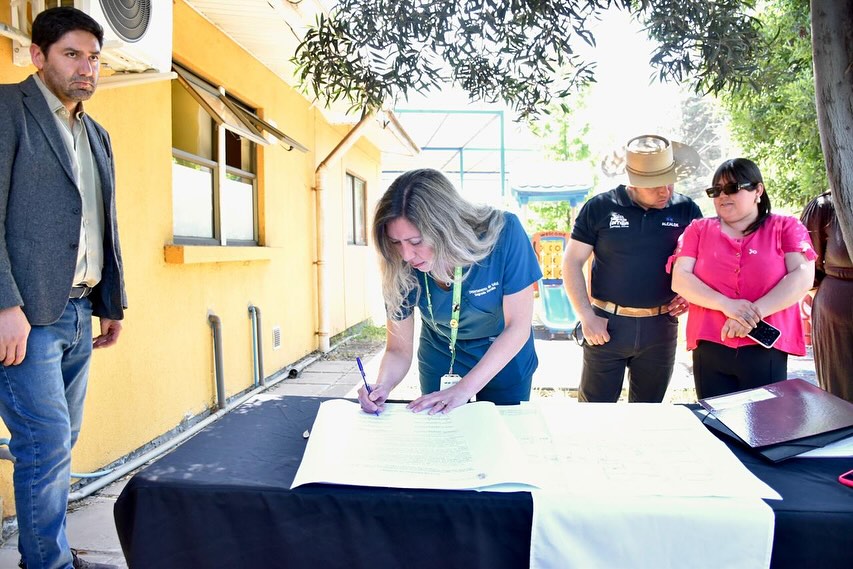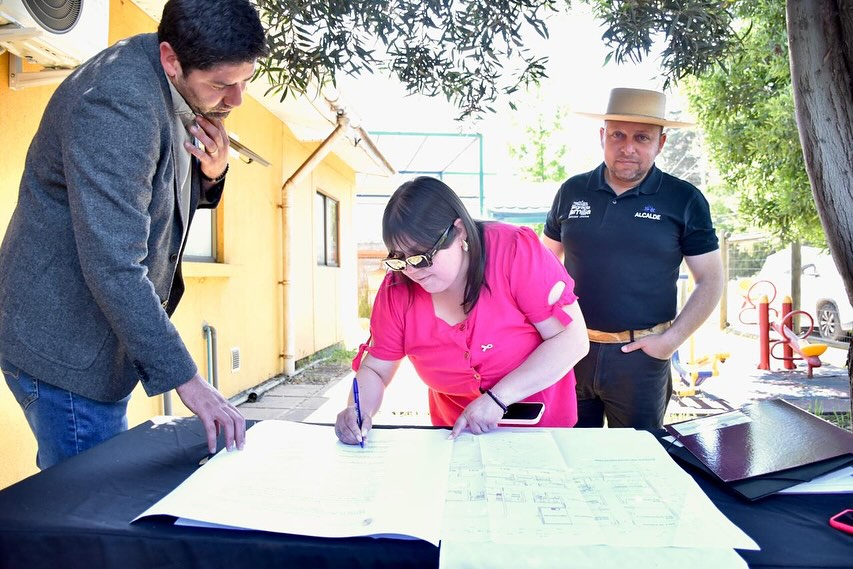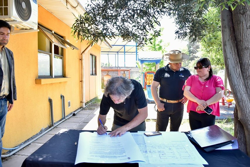 El alcalde Osvaldo Jorquera, junto a la concejal Yanina Herrera, la directora de salud comunal, Carla Castillo, el representante de la empresa responsable y un equipo municipal, participaron de este hito administrativo, que permite iniciar los trabajos.