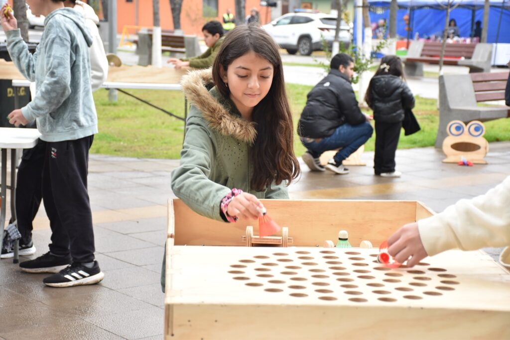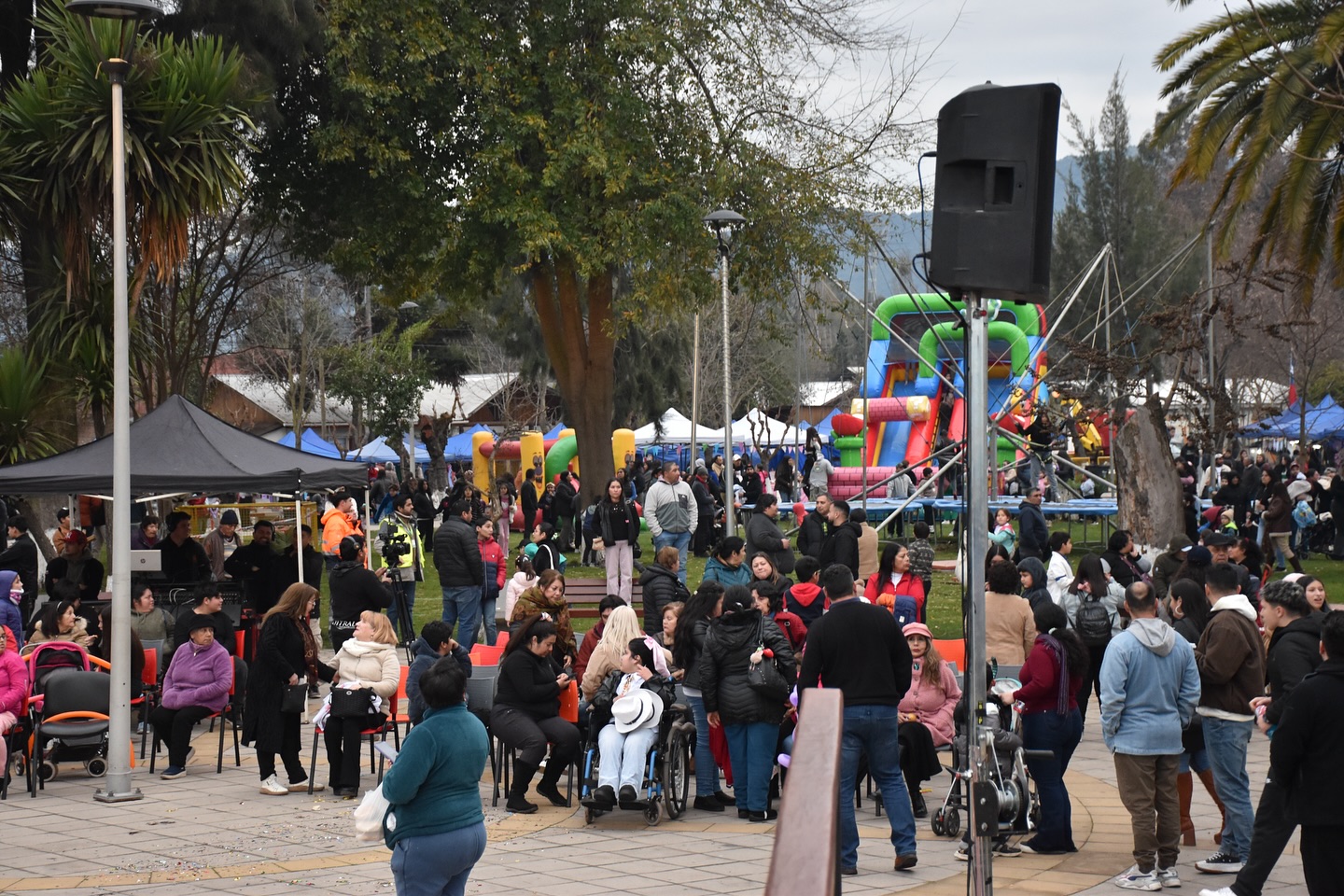 El clima no fue impedimento para que la familia llegara a la plaza de armas de la comuna, a disfrutar de diversas actividades y atracciones para los niños y niñas.