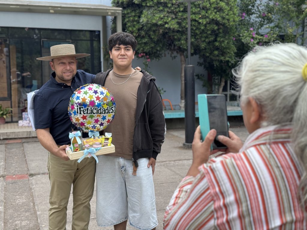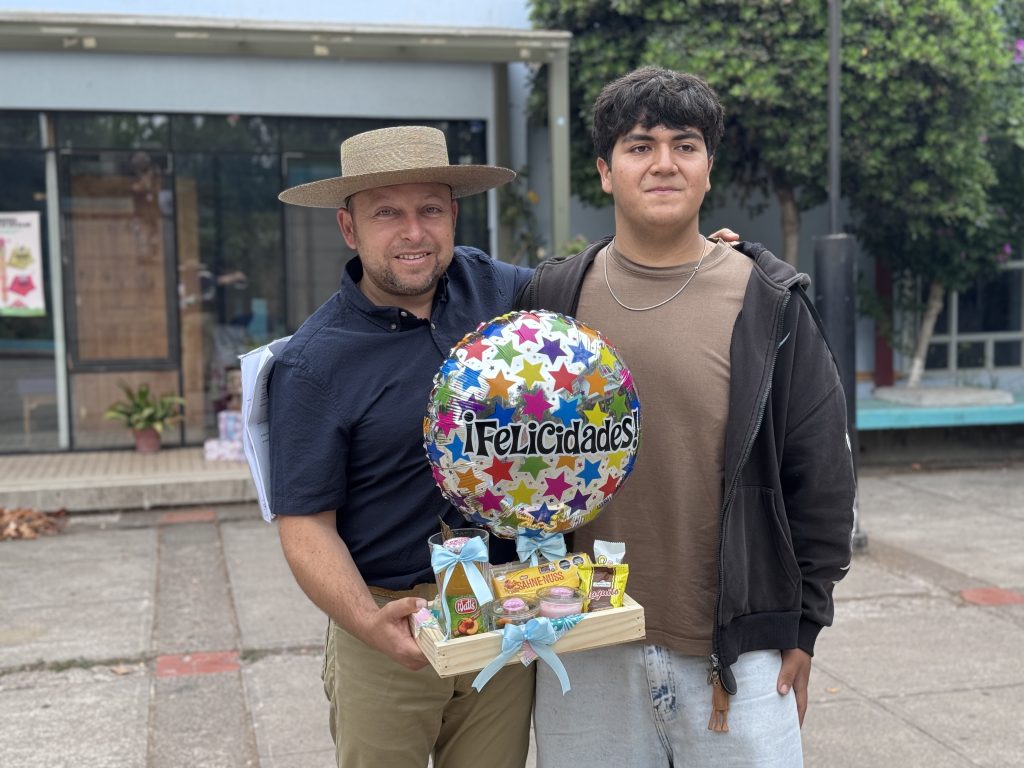 El alcalde Osvaldo Jorquera, junto al jefe Daem Rubén Salas, se reunieron con Fabián y su madre Margarita, para expresarles su alegría y satisfacción por conseguir este hito en la educación comunal.