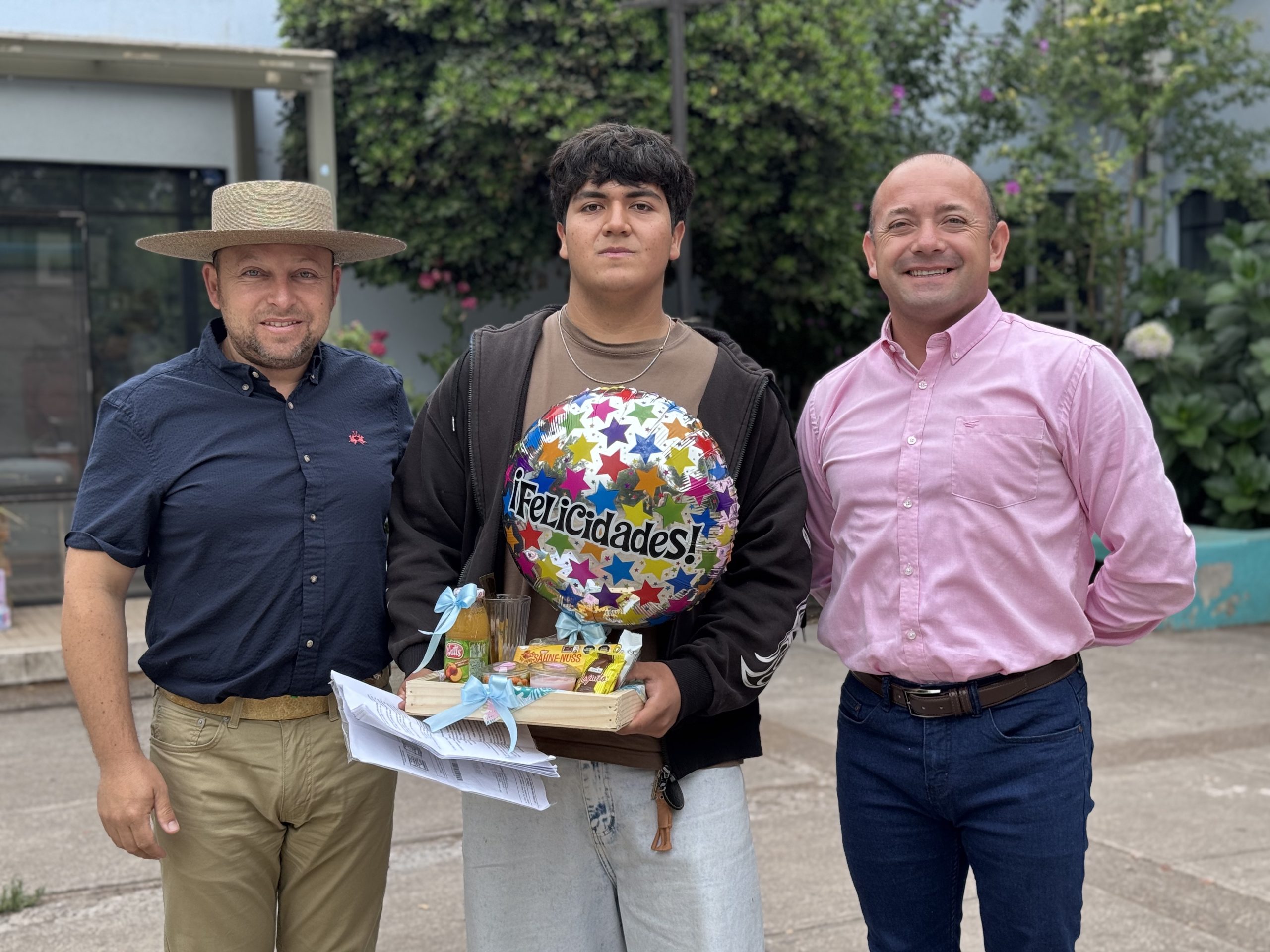 El alcalde Osvaldo Jorquera, junto al jefe Daem Rubén Salas, se reunieron con Fabián y su madre Margarita, para expresarles su alegría y satisfacción por conseguir este hito en la educación comunal.