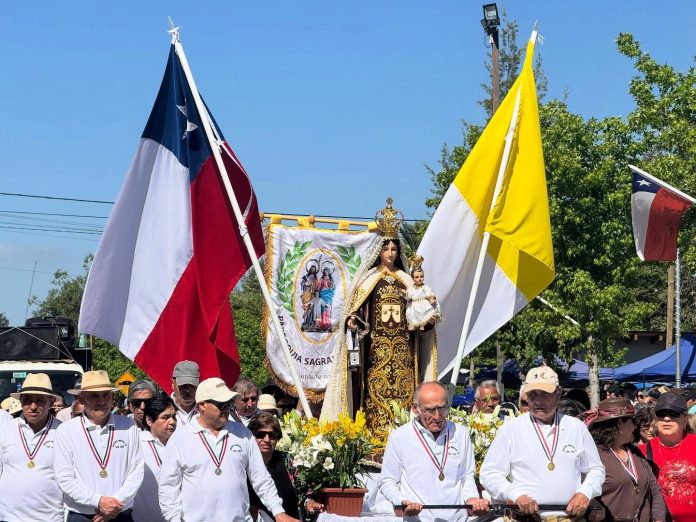 Como cada año, la Virgen recorrió las calles aledañas a la emblemática parroquia ubicado en la plaza, para luego recibir el saludo de fieles organizados en comunidades, instituciones como bomberos, motoqueros de comuna y, por supuesto, los huasos que en esta oportunidad, elevaron su número de participantes a 342.