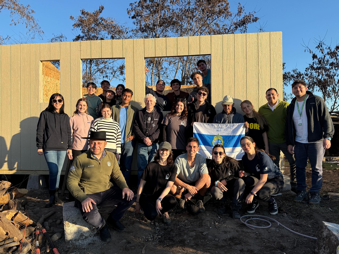 El Alcalde Osvaldo Jorquera visitó a los jóvenes de la Universidad Católica de Chile, que se encuentran realizando voluntariado en la comuna. Los estudiantes construyen diez viviendas en distintas localidades de Sagrada Familia, en el marco de los trabajos sociales de la casa de estudios.
